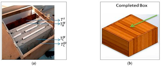 The previous setup of the hot-box experiment. (a) The outer surface of the hot box was not insulated [32]. (b) The top surface of the hot box was not insulated [32].