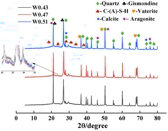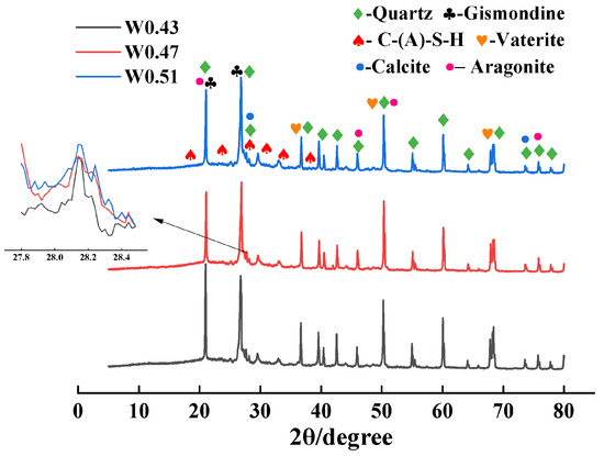 XRD of SSAS after 28 days standardized curing with different W/B ratios.