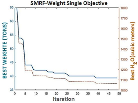 Algorithm progression figure in relation to water consumption for the production of steel in structural steel frames.