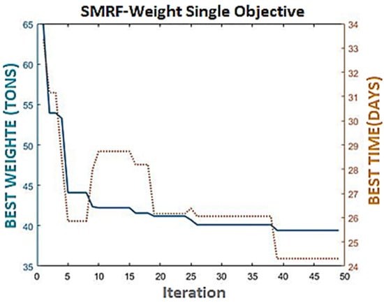 - It was also evident in the results of the single-objective algorithm that there is no special relationship between the weight of the structure and the duration of construction. So that the construction time does not necessarily decrease by reducing the weight of the structure.
