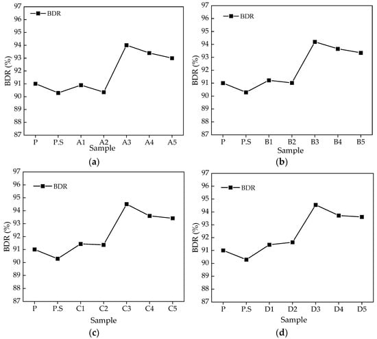 (a–d) BDR variation curves of the AASCSS representing activator dosages of 2%, 4%, 6%, and 8%, respectively.