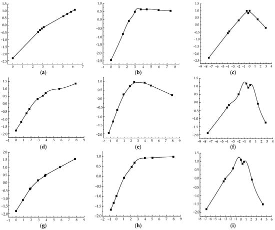 Three optimal ridge function images of the mechanical performance and frost resistance. (a–c) are the three optimal ridge function images for the 7-day unconfined compressive strength of the mixture; (d–f) are the three optimal ridge function images for the 28-day unconfined compressive strength of the mixture; (g–i) are the three optimal ridge function images for the BDR.