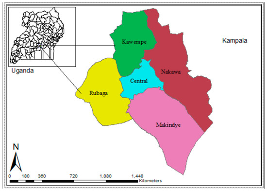 Map of Uganda’s capital, Kampala, showing its divisions.