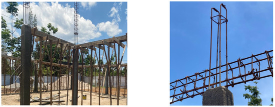 However, it is worthwhile to note that the implementation of industrialized building systems (IBSs) is not effectively implemented in developing countries that are technologically dependent on developed countries as reported by the low share of industrialized building systems [16]. This is attributed to the fact that in most developing countries such as Uganda, the construction sector is largely informal, with the formal sector heavily relying on the informal sector for cheap available labour. As such, design and construction practices adapted for developed economies with the objective of minimizing labour costs and maximizing material utilization, such as prefabricated concrete, may not yield economic designs in Africa. For this reason, concrete technology in Africa should capitalize on the informal construction sector that is heavily dependent on the use of reinforced in situ concrete for the construction of large heavy-duty concrete-framed structures composed of beams and columns [4]. Beams, illustrated in Figure 2, which are the major area of focus for this study, are defined by Sookdeo [17] as structural elements subjected to bending loads transverse to their longitudinal axis. These components resist forces laterally or transversely applied to them as well as shear forces and bending moments. Additionally, these structural elements are responsible for transferring loads from the slab to the column and finally to the foundations. Concrete beams are reinforced with steel rods to ensure resistance to internal tension forces within the cross-section as the resulting bond between the steel and concrete enables the displacement of tensile forces from concrete to steel [18].