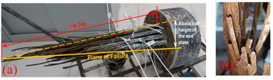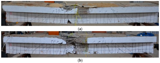 Two typical failure patterns of CPC beams []. (a) Concrete crushing. (b) Wire rupture of corroded prestressed strands.