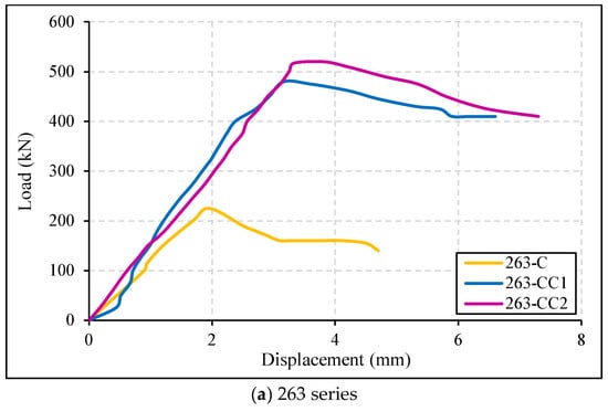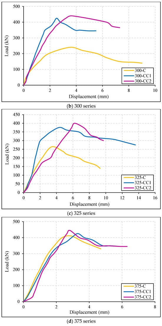 - In general, the unconfined columns indicated a reduced load-carrying capacity with higher displacements, whereas the strengthened columns displayed substantial capacity increments with less displacement. The 375-CC series illustrated minimal strength enhancement, closely aligning with the unconfined columns.