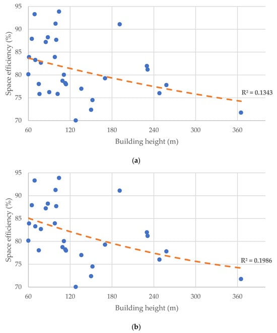 3.3.1. Interrelation of Space Efficiency and Building Height