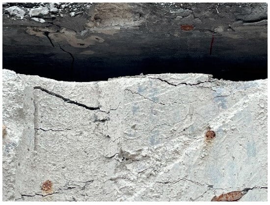 It is worth mentioning that the axial compressive strength of concrete measured in this study was 50.3 MPa, while the axial compressive strength of the standard value of C30 is 20.1 MPa. The value was 2.5 times the standard value of the axial compressive strength of C30, which was specified in the specification. This is attributed to the fact that the concrete-hydration reaction was sufficiently conducted during the 15 years of service, and a dense microstructure was formed. Consequently, the compressive strength of concrete significantly increased.
