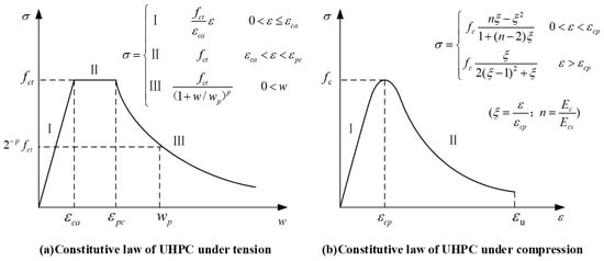 Referring to [,], the constitutive relationship of UHPC is shown in Figure 15.