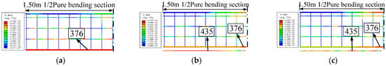 where , , and are the bending stiffnesses of the elastic stage, elastic-plastic stage, and plastic stage, respectively. The results are listed in Table 4.
