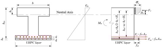 In Figure 24, , , and denote the height, width, and tensile strength of the UHPC layer, respectively, and and are the yield strength and total area of tensile steel bars in the UHPC layer.