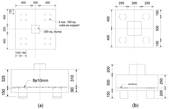Specimens dimensions (a) Pile Cap A and (b) BPC 30-30.