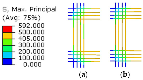 The parameter () shows that a biaxial stress state gives rise to a higher strength when compared to a uniaxial stress (Figure A1a). This ratio is often adopted with a value equal to 1.16 [25] and it is used to determine the value of in Equation (A2). Experimental compressive tests give a precise ratio to be adopted. Ren et al. [40] determined this ratio using a numeric model. The research found a value equal to 1.76, which is higher than 1.16.