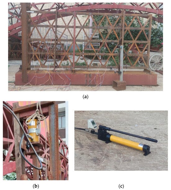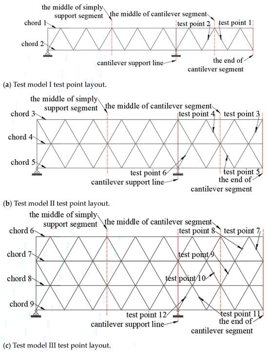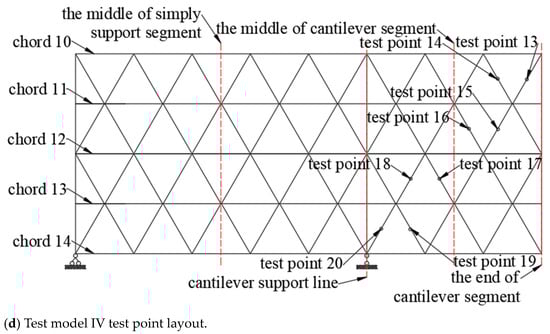 The actual test model and the jack loading equipment are shown in Figure 14. By loading at the end of the cantilever segment, we could analyze the stress and deflection characteristics of the truss. The main parameters of the four models are listed in Table 7.