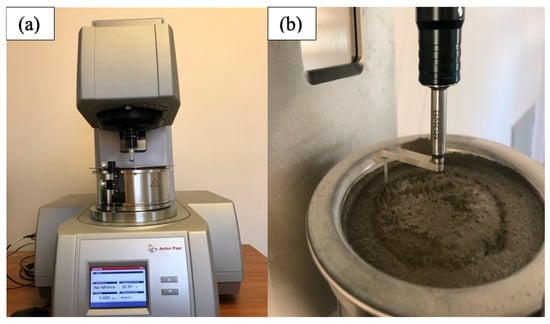 - 5th period: In this period, moment measurements were taken every 2 s for a total of 15 times for 30 s with a constant shear rate of the mixture (0.02 s−1). During this period, the static (at rest) yield stress of the material was measured.