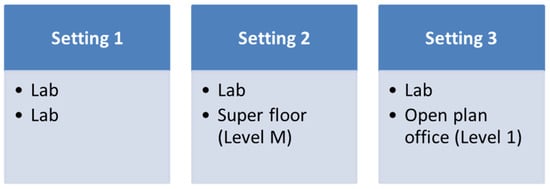 - Candido, C.; Gocer, O.; Marzban, S.; Gocer, K.; Thomas, L.; Zhang, F.; Gou, Z.; Mackey, M.; Engelen, L.; Tjondronegoro, D. Occupants’ satisfaction and perceived productivity in open-plan offices designed to support activity-based working: Findings from different industry sectors. J. Corp. Real Estate 2021, 23, 106–129. [Google Scholar] [CrossRef]