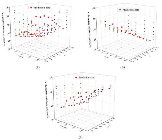 - To improve the prediction accuracy of the model, separate training models were established for the SWCC considering temperature and deformation effects, as well as the SWCC considering salinity and deformation effects, for prediction analysis. By comparing the prediction results of the established model for SWCC characteristics under temperature, salinity, and deformation factors with relevant experimental results, including the effects of two factors and the combined effects of three factors, the validity of the model was verified.