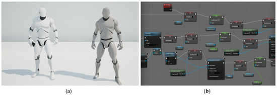 - Chu, E.; Zaman, L. Exploring alternatives with Unreal Engine’s Blueprints Visual Scripting System. Entertain. Comput. 2021, 36, 100388. [Google Scholar] [CrossRef]