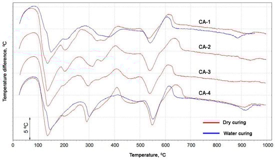 Figure 10 shows DTA curves for mixes CA-1–CA-4.