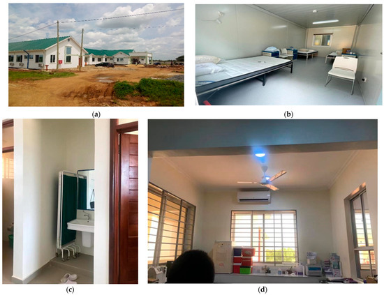Shinyanga COVID-19 isolation center: (a) a general view of an isolation center; (b) suspected cases isolation room; (c) confirmed cases isolation ward; (d) a laboratory where the test takes place.