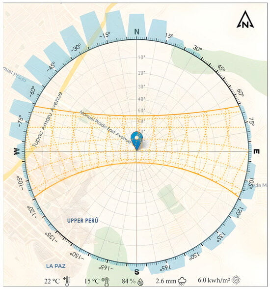 During the second phase, location and data analysis of the intervention site were carried out using the OpenStreetMap tool. This allowed for consideration of potential terrain limitations, specific environmental challenges, as well as existing physical deficiencies and climatological needs in the El Progreso–Carabayllo area. Additionally, climatological data were analyzed, addressing essential aspects such as temperature (maximum, minimum, average), wind (speed and direction), relative humidity (maximum, minimum, average), and precipitation. This facilitated the implementation of sustainable design strategies in educational centers aimed at minimizing environmental impact positively. The following outlines the climatic data acquisition process:
