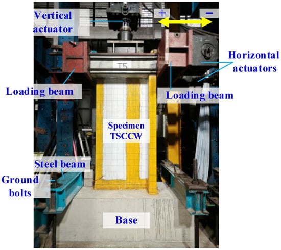 In high-rise buildings, orthogonally oriented shear walls are usually combined to form T-shaped or L-shaped shear walls [,,]. A T-shaped wall is a member consisting of two orthogonal shear walls. The flange portion and web portion of a T-shaped shear wall interact with each other under horizontal loading. Therefore, the seismic design of T-shaped shear walls faces a more complicated situation [,,]. A separate study should be carried out on T-shaped shear walls.