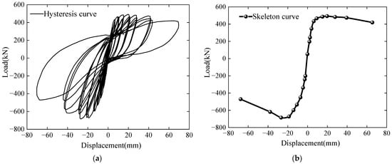Hysteresis and skeleton curves of specimen. (a) Hysteresis curve; (b) skeleton curve.