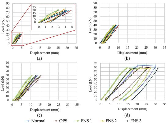 - FNS RC beams demonstrated higher stiffness compared to normal and OPS RC beams, with lower maximum displacements but higher residual displacements, indicating potential long-term deformability.
