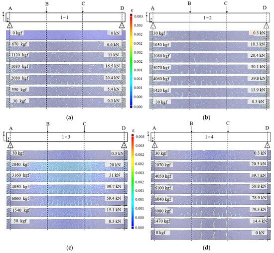 - Cracks in the B–C area primarily experienced pure bending, while A–B and C–D regions exhibited flexural–shear behavior, influencing crack widths and propagation patterns.