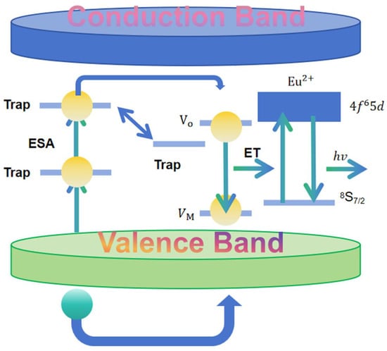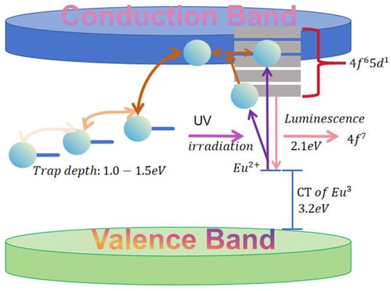 - Zeng, P.; Wei, X.; Yin, M.; Chen, Y. Investigation of the Long Afterglow Mechanism in SrAl2O4: Eu2+/Dy3+ by Optically Stimulated Luminescence and Thermoluminescence. J. Lumin. 2018, 199, 400–406. [Google Scholar] [CrossRef]