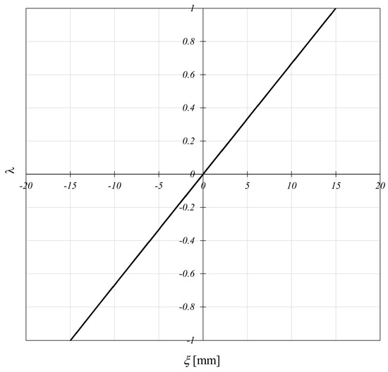 Based on Equations (20) and (21), the axial/transversal displacement shape functions , obtained by imposing unit nodal displacements and evaluating the integration constants, can be formulated as follows: