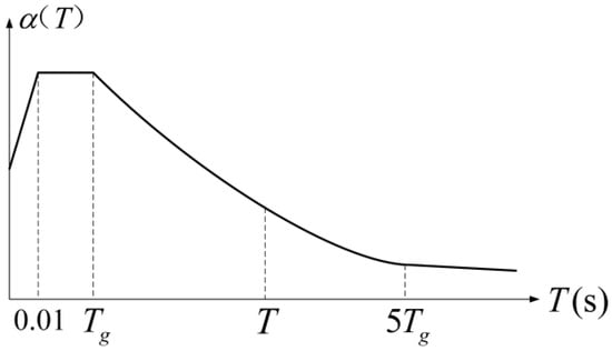 where α is the seismic influence coefficient, dimensionless, and its curve is shown in Figure 2; W is the gravity of the structure; F represents the horizontal seismic action [35]. Typically, most mid-rise building structures have natural periods around Tg, which leads to a significant seismic influence coefficient (see Figure 2) and further results in a large horizontal seismic action. By incorporating a seismic isolation system, the natural period of the isolated structure can be extended to near T (see Figure 2), significantly reducing the seismic influence coefficient α. This reduction substantially decreases the forces exerted on the upper structures.