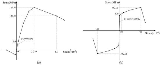 Constitutive relationships of the (a) concrete; (b) reinforcing steel.