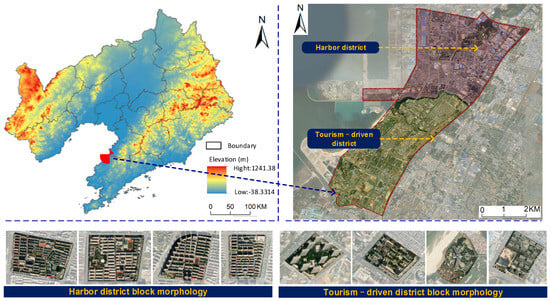 Based on the above discussion, we identified the following areas for improvement in the interaction mechanisms between spatial vitality and the built environment in coastal cities: (1) More research is needed on the vitality characteristics of coastal cities in cold regions. Existing studies mostly describe the construction around waterfront areas without investigating how marine resources influence urban spatial development. (2) There are some areas for improvement in the exploration methods of influencing factors on urban vitality in coastal cities, and the reasons for changes in spatial vitality characteristics have yet to be interpreted from the perspective of coastal city development. (3) Previous research has yet to explore the relationship between spatial vitality and the built environment in coastal cities at the block scale, and fine-grained research can address urban construction issues more profoundly. In this paper, we chose the basic unit of urban space and social connection—the block—as the research scale. Using Baidu heatmap data, we describe the spatiotemporal patterns of spatial vitality in coastal cities during different tourist seasons.
