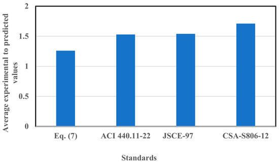 The average experimental to predicted values for the standards ACI 440.11-12 [24] CSA-S806-12 [27] and JSCE-97 [28].