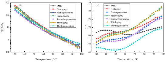 - As the time of aging–regeneration increases, the G* is never recovered to the level of the original SMB, the plateau domain in the δ curve gradually disappears, and the elastic portion provided to the SMB by the SBS is gradually lost. The recovery of the plateau domain is not obvious with the cycle increase.