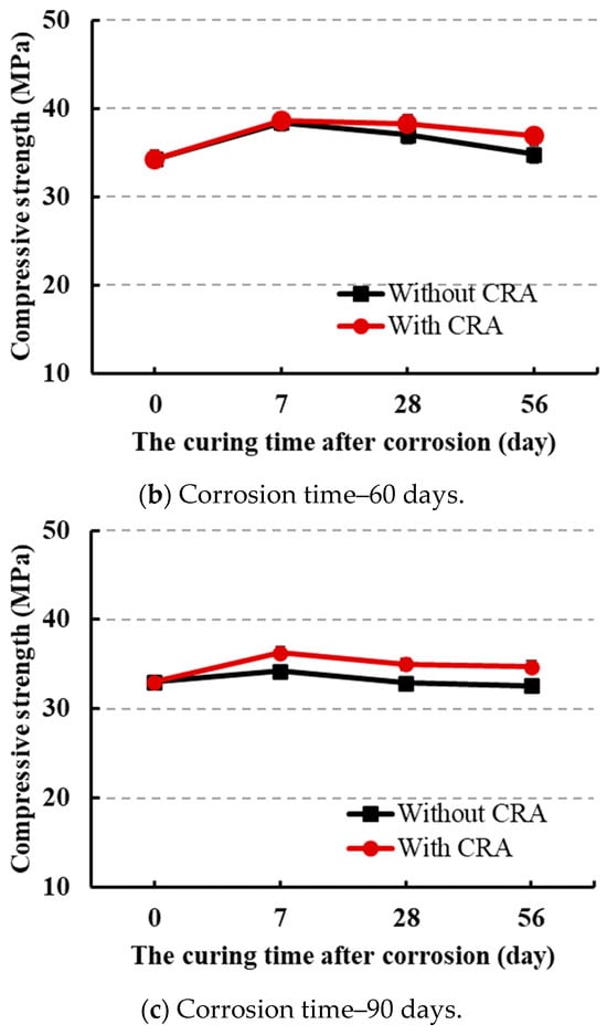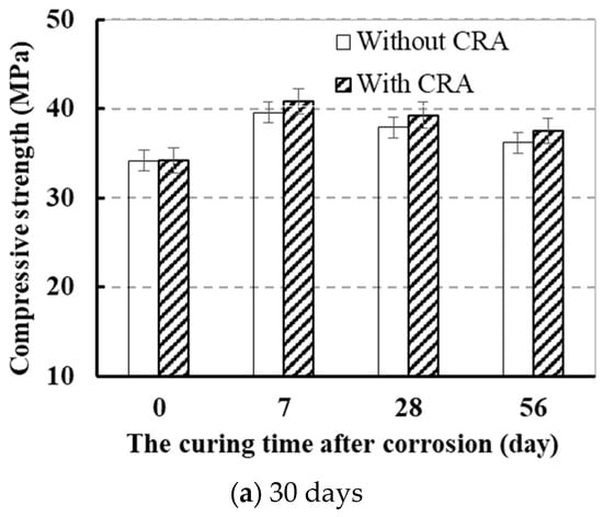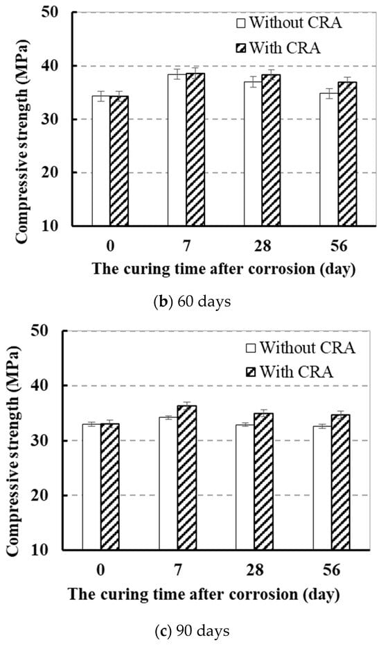 | Corrosion Time (Day) | Dosage of CRA (kg/m2) | Compressive Strength (MPa) | ||||