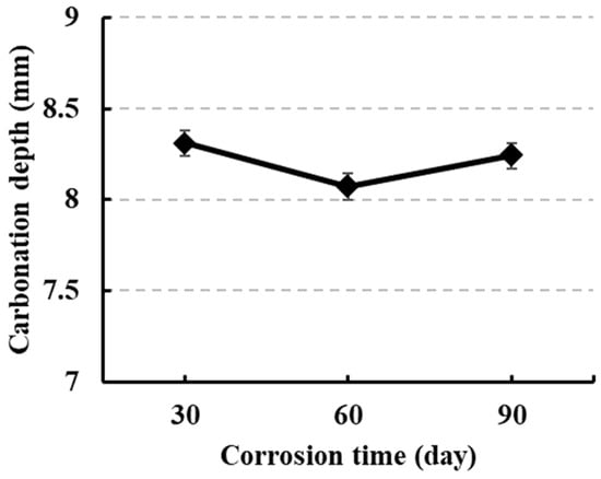 3.2.1. Effect of Sulfate Corrosion Time on Carbonation Resistance of Concrete