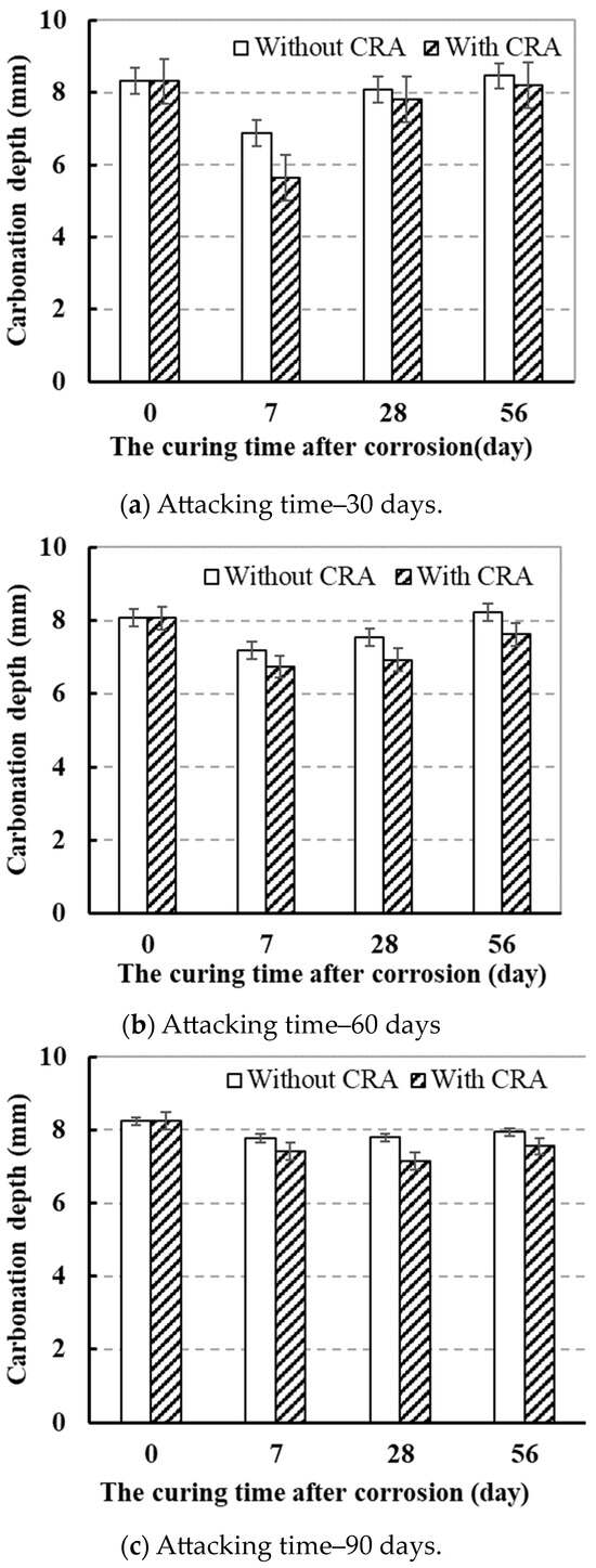 3.2.2. Effect of CRA on Carbonation Resistance of Concrete