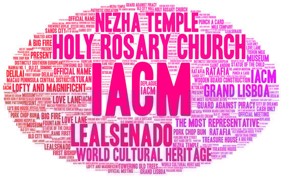 Focusing on the World Heritage City of Macau, academics have undertaken various studies. Research on the tourist destination image of Macau initially employed local tourism website text and image data in 2007 to identify visitor perceptions of the city’s urban image []. Then, studies have contrasted the image recognition of Chinese and international tourists visiting Macau, drawing upon the image dissemination strategies employed on Chinese and English websites []. More recently, scholars have utilized text mining methods to analyze user-generated content pertaining to Macau on TripAdvisor, spanning from 2005 to 2013, comparing these findings with nationally recognized destination images [].