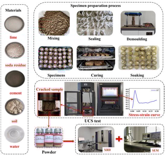 Cheng, W.; Yin, W.; Wang, X.; Xu, Q.; Wang, G.; Cao, J.; Zhu, S. Multi-Factor Orthogonal Experiments and Enhancement Mechanisms of Unconfined Compressive Strength of Soda Residue Cement Lime Soil. Buildings 2024, 14, 2189. https://doi.org/10.3390/buildings14072189