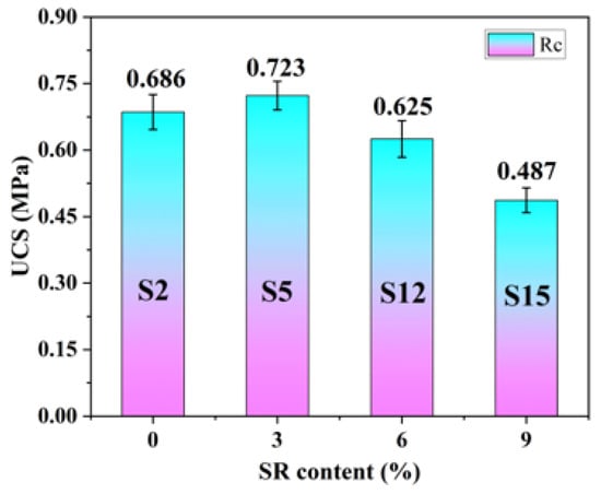 - With the gradual increase in SR content within the range of 0% to 9%, SRCLS UCS initially increased and then decreased. As the SR particle size or SRCLS moisture content increased gradually, the SRCLS UCS gradually decreased, while an increase in curing age led to a gradual increase in SRCLS UCS.