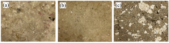 - Fine aggregate filling effect: The high content of CaCO3 in SR allows SR particles to act as fine aggregates in the system, improving the gradation of the system, reducing inter-particle voids, and enhancing internal compactness, thus serving as fillers during strength formation [36].