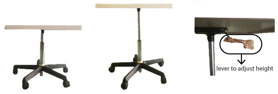 - Jung, H.S. A prototype of an adjustable table and an adjustable chair for schools. Int. J. Ind. Ergon. 2005, 35, 955–969. [Google Scholar] [CrossRef]