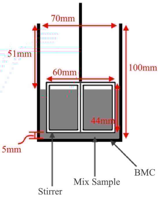 Schematic of geometry and positioning of the stirrer, BMC, and mix sample in the rheometer.