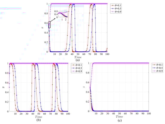 Firstly, in Section 5.1, this paper considers the effects of different degrees of green value co-creation (θ) and initial willingness combinations of the remanufacturer, the construction enterprise, and the public on the steady state of system evolution. This helps to clarify the overall influence of multiple factors on the evolutionary trend of the system and provides a basis for further analysis on how to facilitate the evolution of the system to the desired state (1,1,1).