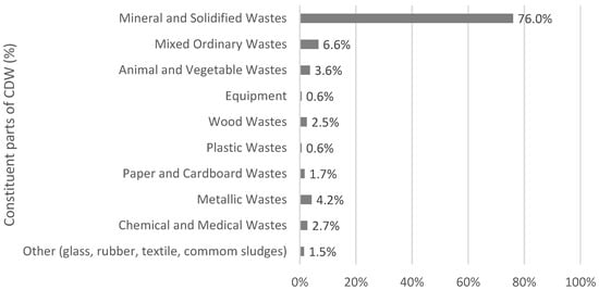 - Galderisi, A.; Iezzi, G.; Bianchini, G.; Paris, E.; Brito, E. Petrography of construction and demolition waste (CDW) from Abruzzo region (Central Italy). Waste Manag. 2022, 137, 61–71. [Google Scholar] [CrossRef]