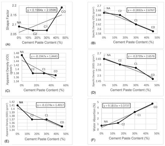 | Materials | Specific Density (OD) (g/cm3) | Apparent Density (OD) (g/cm3) | Specific Density (SSD) (g/cm3) | Apparent Density (SSD) (g/cm3) | Water Absorption (%) | Form Factor | Cement Paste (%) |