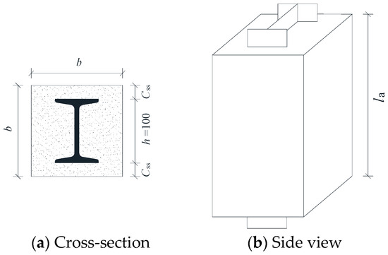 Scholars have begun a preliminary exploration of the interface bond properties between shaped steel and ECC. Bai [30] investigated the bond behavior between H-shaped steel and ECC and obtained the bond stress–slip curves at the loading end. The various parameters included the volume fraction of polyvinyl alcohol (PVA) fiber, stirrup reinforcement ratio, ECC cover thickness, and H-shaped steel embedded length. The results indicated that the ultimate bond stress was significantly affected by the PVA volume fraction and cover thickness, whereas the stirrup-reinforced ratio had little influence on the critical bond stress. Tian [31] tested the nine full-scale, H-shaped steel–ECC specimens and simulated the shaped steel–ECC interface by using cohesive finite elements. The experimental results showed that a splitting failure finally occurred for the ECC specimens with multiple splitting and intumescent cracks, and the outer flange of the H-shaped steel carried most of the push-out load.