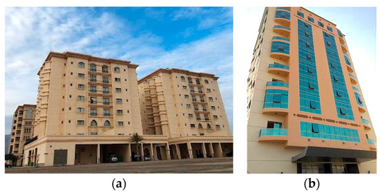 This very recent significant transition to vertical public housing is represented so far in only two pioneering projects: the Dibba Al-Hosn vertical public housing project in Sharjah Emirate and the Al Ghurfa vertical housing project in Fujairah Emirate [20], as shown in Figure 1. Introduced in 2014, the Dibba Al-Hosn project was envisioned as a remarkable step toward environmentally sustainable public housing design that also considers the sociocultural values and needs of the Emirati family [21]. Similarly, the Al Ghurfa vertical public housing project, designed in 2014 by the Sheikh Zayed Housing Program, aimed to incorporate the unique social and cultural characteristics of Emirati people, especially privacy, through the division of each flat into three levels distinguishing between the family, guests, and service zones [22].